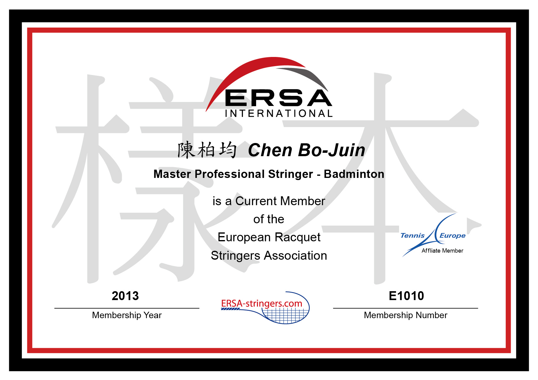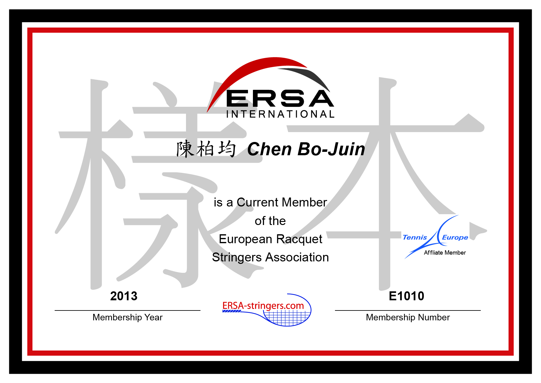 (具有基礎了解球線以及球拍特性的知識,通過筆試與實務穿線測驗,能夠提供完整穿線服務的穿線師。)