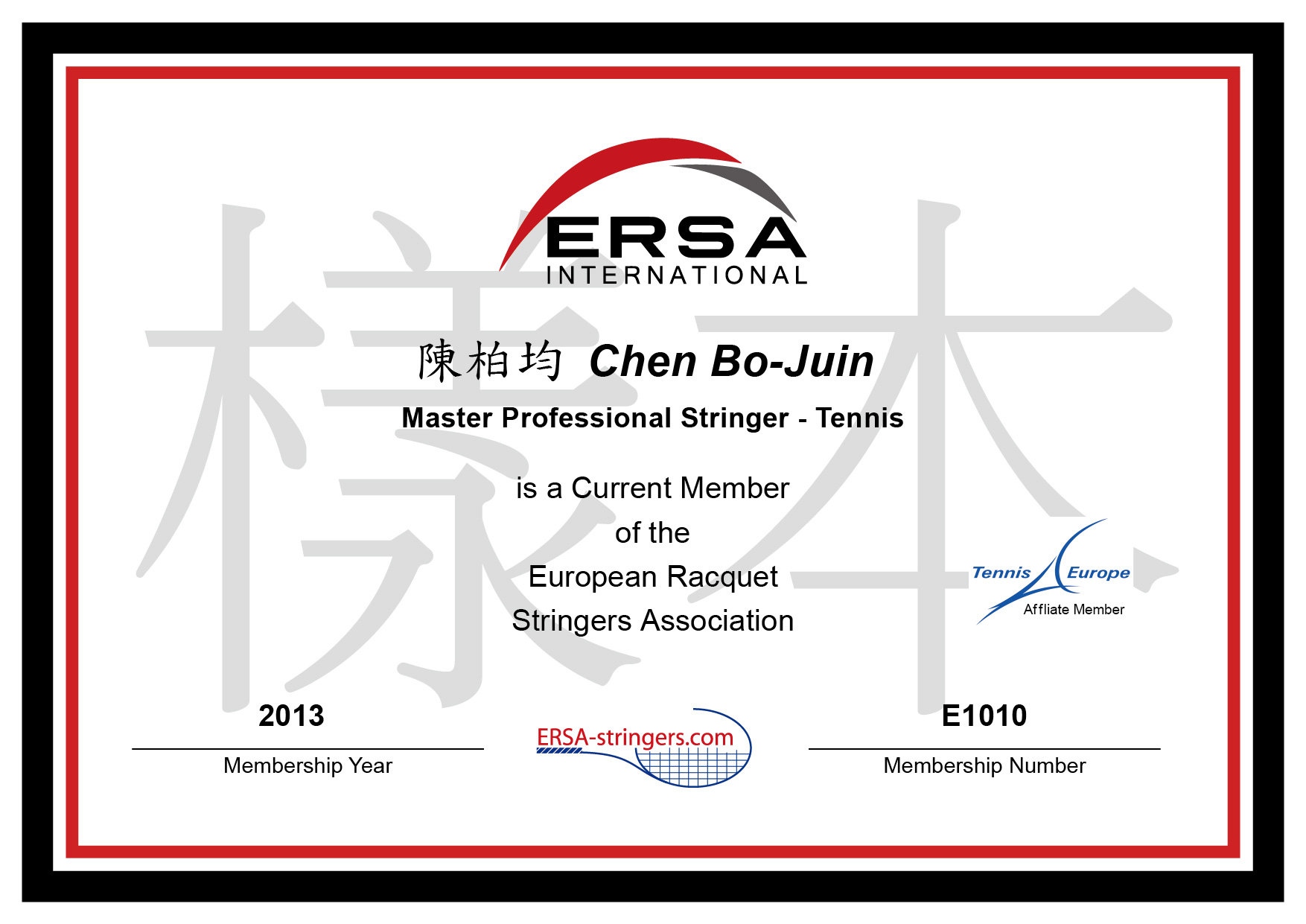 (具有基礎了解球線以及球拍特性的知識,通過筆試與實務穿線測驗,能夠提供完整穿線服務的穿線師。)